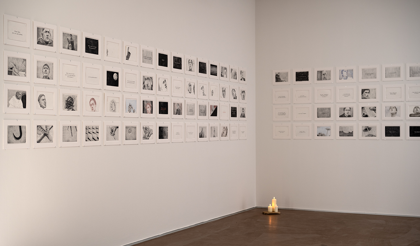 Die Ausstellung setzt sich mit einem der bedeutendsten Meisterwerke der Filmgeschichte auseinander: La Passion de Jeanne d’Arc (1928) von Carl Theodor Dreyer. Im Zentrum des Projekts stehen 189 Zeichnungen, die den Stummfilm neu interpretieren und seine Erzählstruktur sowie seine visuelle Sprache in eine eigenständige Bildfolge übertragen.